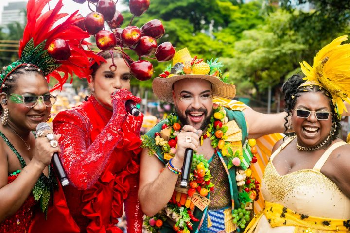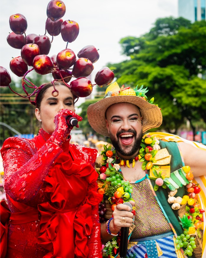 Foi fruta para todos os gostos no desfile do Bloco do Abrava, de Tiago Abravanel, pela Avenida Faria Lima, coração financeiro de São Paulo, na tarde deste sábado, 7 de fevereiro. Com Gilmelândia e Wanessa Camargo como convidadas especiais e as afinadas estrelas dos musicais Suzana Santana e Amanda Vicente nos vocais, Tiago Abravanel incendiou o bloco com hits da folia. Donda de uma das mais belas vozes do Carnaval de Salvador, Gilmelândia brilhou com hits como Maionese, Bate Lata, Faraó e Baianidade Nagô. Com o tema Feira Livre do Abrava, o bloco se concentrou às 11h e saiu por volta de meio-dia, desfilando até pouco após as 16h, com o público quente mesmo depois da chuva que caiu sobre a cidade. Muita gente que tinha ido no bloco de Ivete Sangalo no Ibirapuera logo no começo da manha emendou a festa no Bloco do Abrava. Sobre o tema do bloco, Abravanel explicou: “A ideia é antes de mais nada homenagear esses profissionais das feiras livres, um lugar tão popular e com tanta diversidade de cores e energia”. OBloco do Abrava nasceu em 2020, fruto da trajetória de Tiago Abravanel com o Bloco Gambiarra, a festa do teatro. O desfile ainda coletou latinhas para a reciclagem feita pela ONG MV Serviços. O Blog do Arcanjo esteve por lá e mostra como foi na galeria de fotos de Rafa Marques.