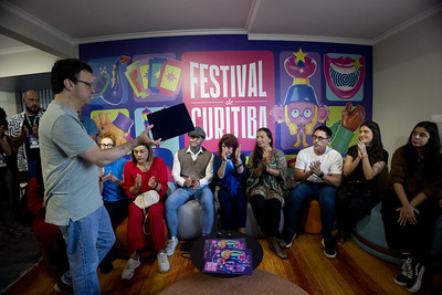 Homenagem a Maurício Vogue na coletiva de imprensa do Festival de Curitiba © Annelize Tozetto Divulgação para Miguel Arcanjo 2026